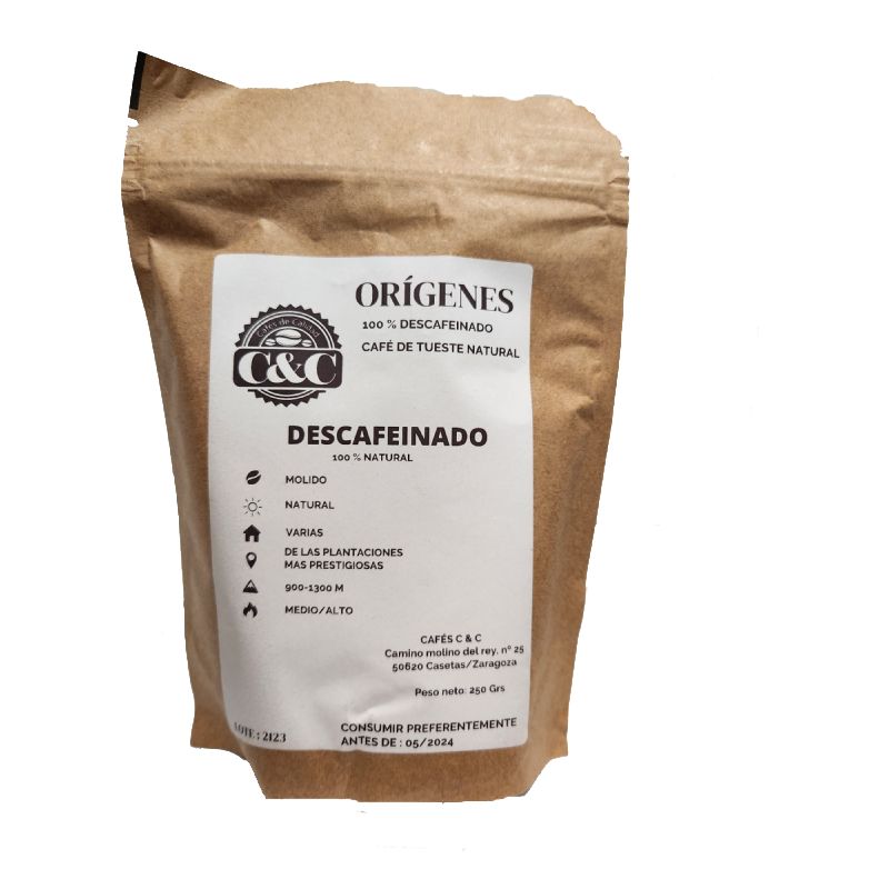 Descafeinado molido en formato de 250Grs.